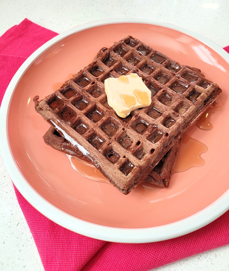 - Spray your preheated waffle iron with cooking spray then scoop or spoon waffle batter in until the waffle plate is covered edge to edge. (You don’t want the waffle too thin but you don’t want it to be too thick either or it’ll just ooze out the sides. Hopefully you know the right amount of batter to put into your waffle iron otherwise this will be trial and error for these first couple waffles.) Cook the waffles for about 7-9 minutes or whatever your waffle iron’s manufacturer recommends. Repeat until the batter is gone then enjoy!